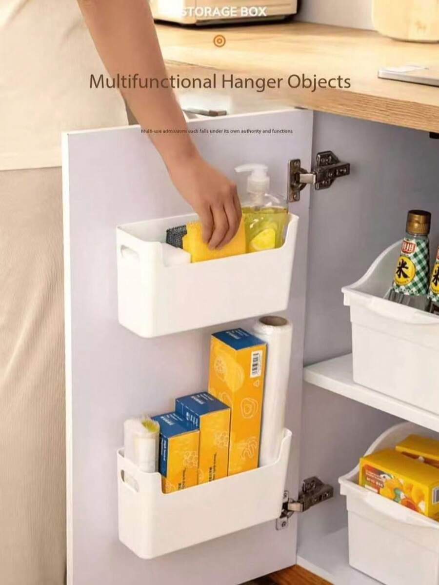 1/2 Paquetes Caja de almacenamiento para colgar en la pared de la cocina, Caja de almacenamiento para el interior del gabinete, sin perforación en la puerta del gabinete, bolsa de conservación, suministros de limpieza, película de conservación, bolsa de conservación, estante de almacenamiento, cesta colgante de la puerta, caja de almacenamiento para colgar en la pared con diseño de árbol de Navidad, alce, copo de nieve, para el interior del gabinete, la puerta del refrigerador, el baño, sin perforación en la puerta del gabinete, estante de almacenamiento para bolsas de plástico frescas