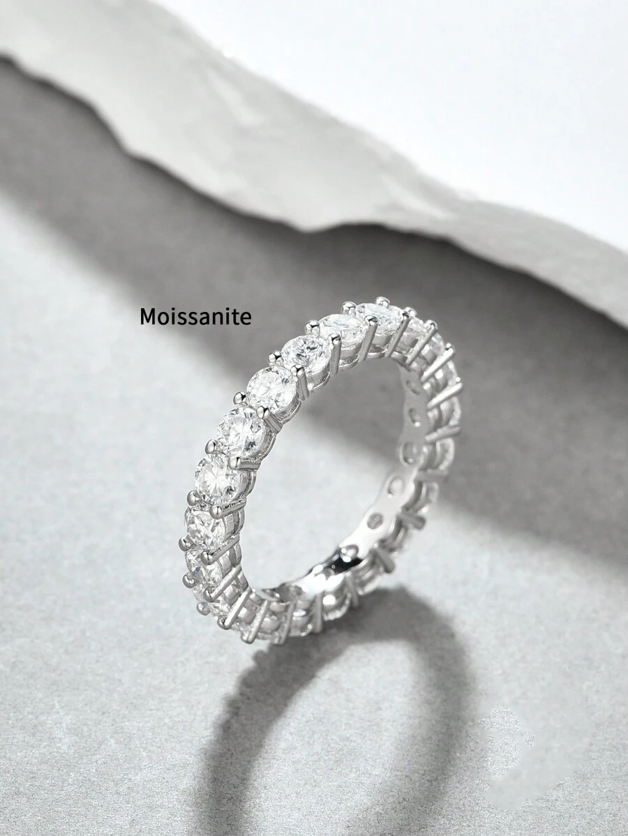 1 pieza anillo de compromiso de dama de plata 925 con 2,1 quilates de rhinestone redondo incoloro transparente de moissanita, adecuado para novia de boda
