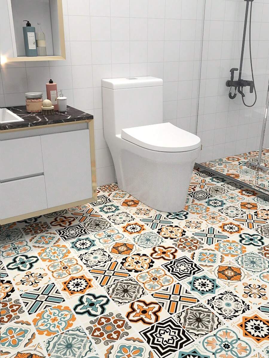 1 Rollo de adhesivo de piso estilo europeo, pegatina de vinilo impermeable con patrón de baldosas para instalar de forma instantánea en la sala de estar, cocina, dormitorio, piso de dormitorio, baldosas autoadhesivas para decoración del hogar