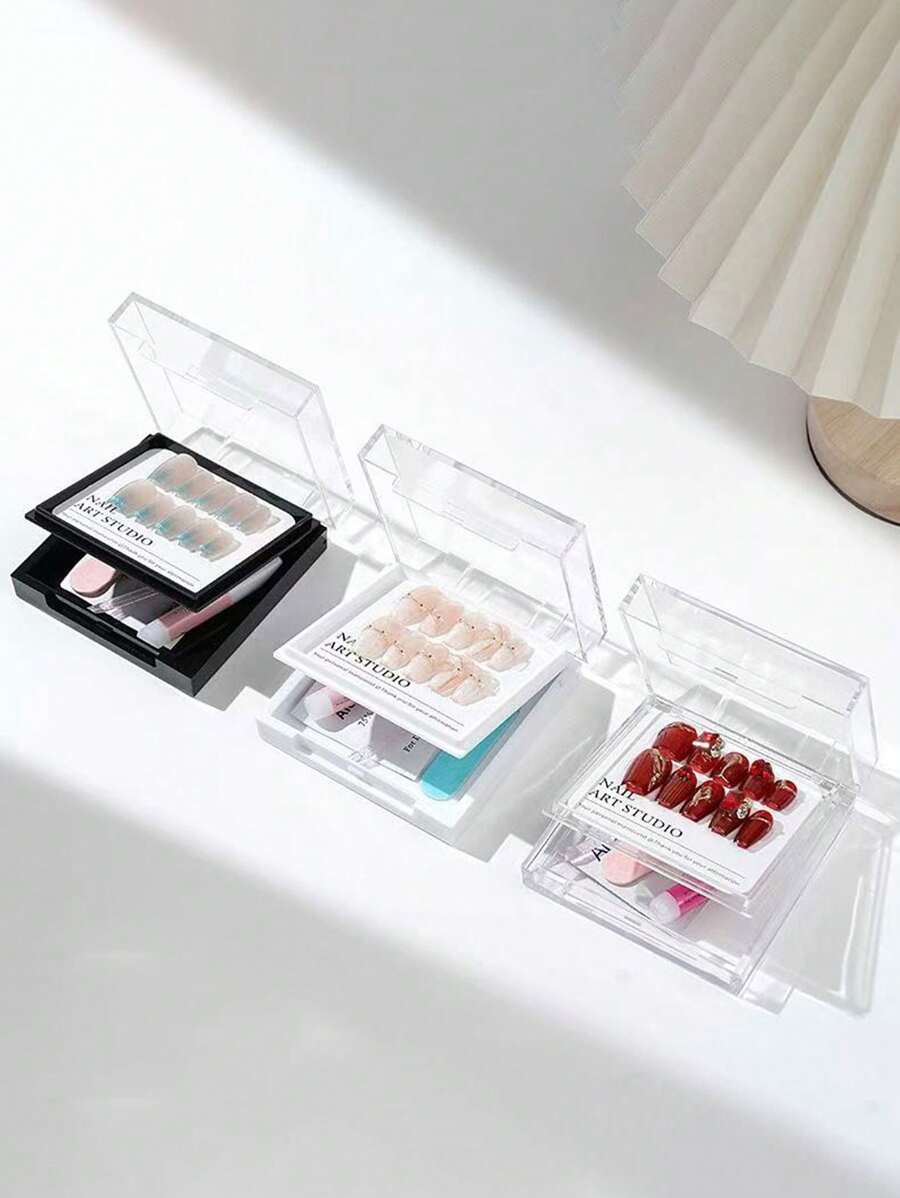 Set de 10/1 pieza - B Caja de exhibición de uñas transparente de doble capa - Caja de almacenamiento de arte de uñas A-PE, portátil y a prueba de polvo, con tapa, adecuada para parches de uñas y herramientas de arte de uñas, caja de clasificación de uñas de doble capa con adhesivo a presión, para vacaciones, playa, baño, colección de dormitorio, gran capacidad