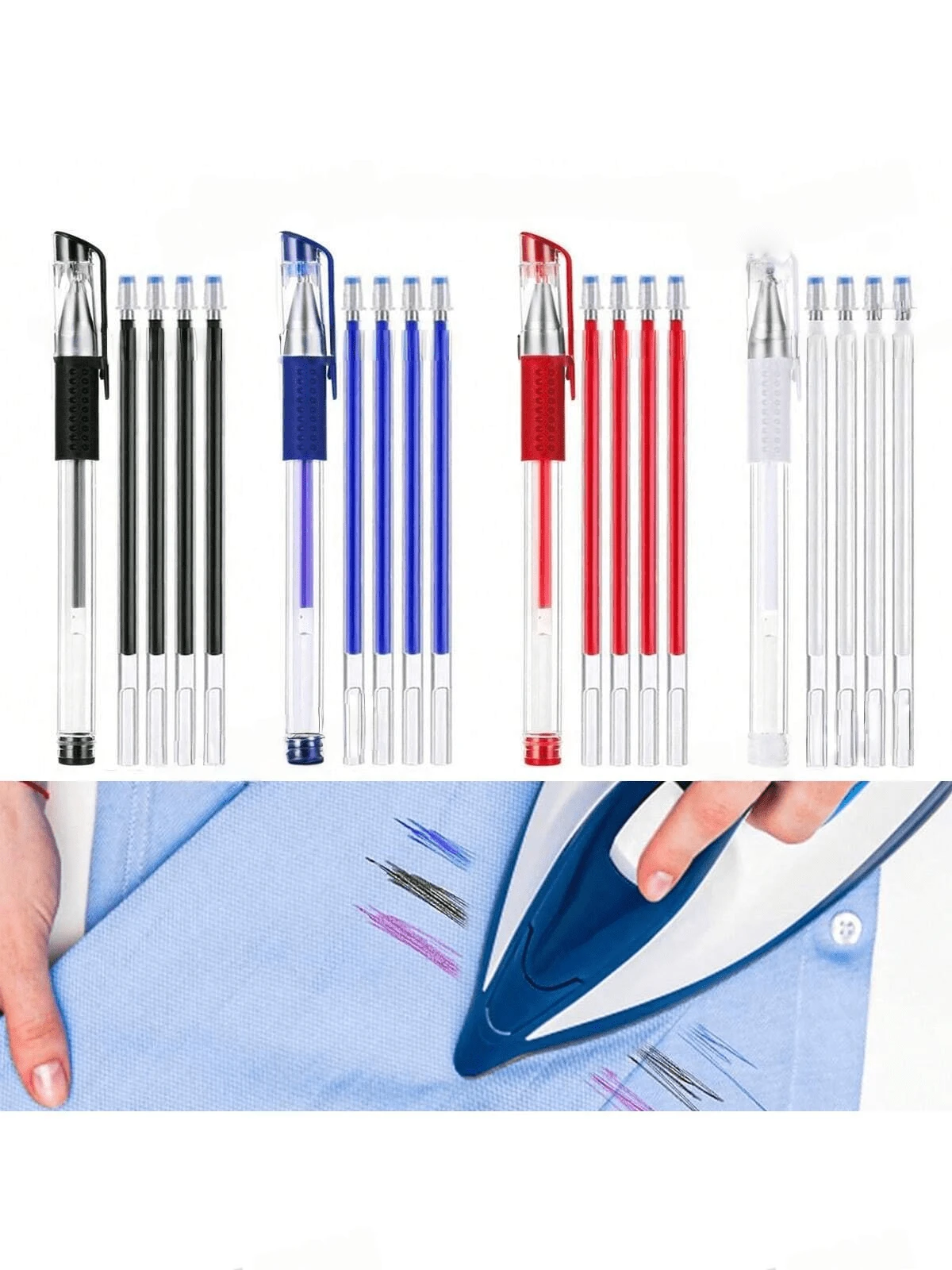 Set de 11/24 piezas con 20 recambios de bolígrafos marcadores de tela de alta temperatura de colores variados con 4 estuches, bolígrafos marcadores de tela borrables con calor para costura, sastrería y acolchado (color de tinta de bolígrafo rojo aleatorio)