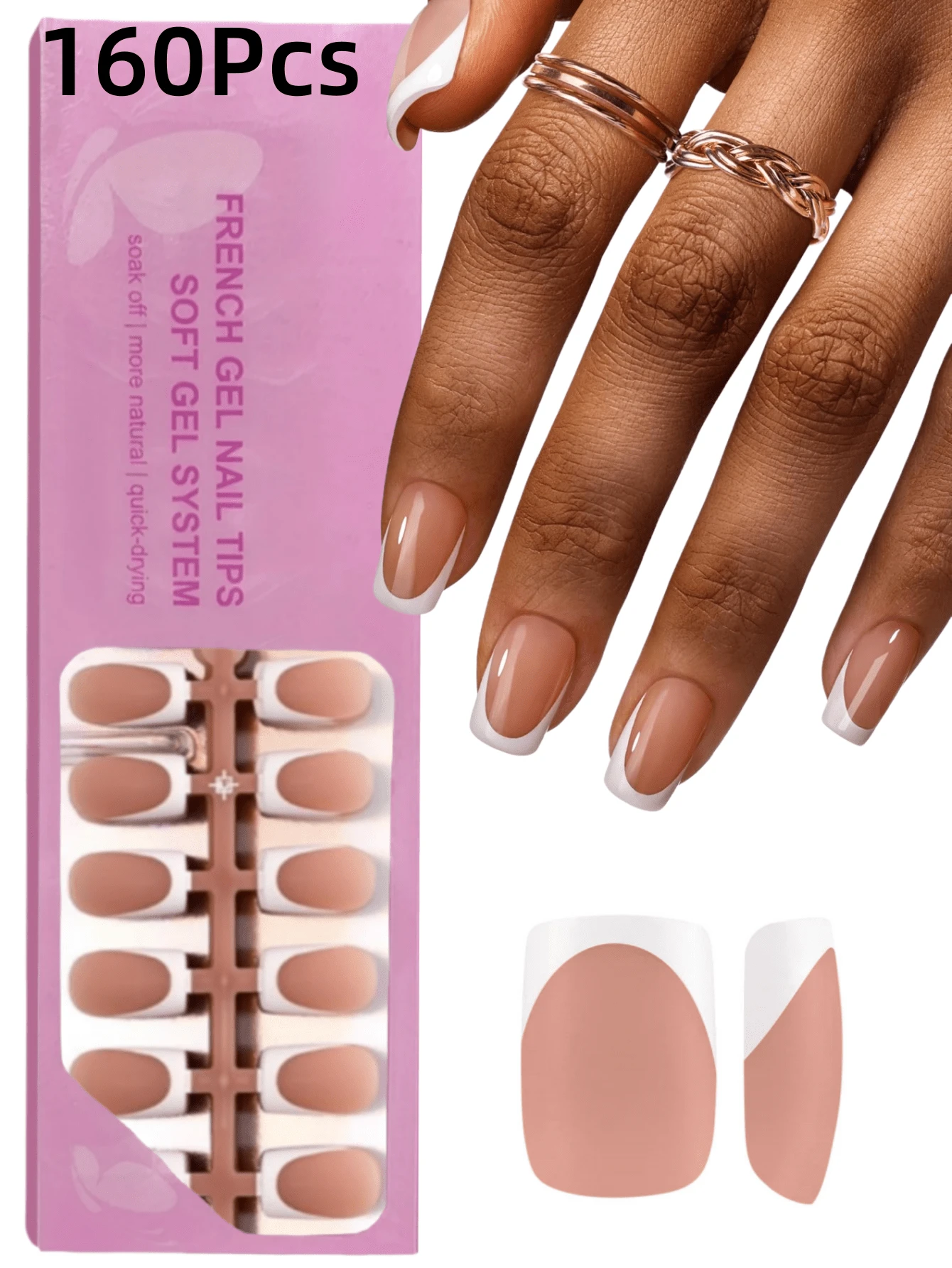 160 piezas de pegatinas de uñas cuadradas cortas, puntas de uñas de gel suaves francesas en marrón/blanco, adecuadas para uñas postizas DIY, minimalistas y versátiles, 16 tamaños, para suministros de uñas de mujer