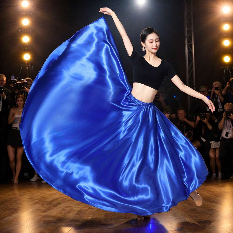 1 pieza de Falda larga /media de satén de 95 cm para mujeres, con cintura elástica, para baile del vientre, fiesta de princesas o cosplay