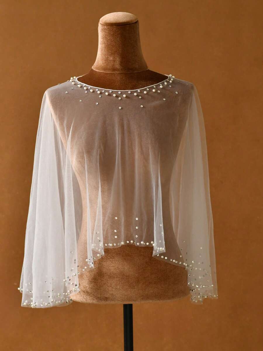1 pieza Chal nupcial, decoración de perlas falsas, minimalista y lindo, adecuado como accesorio para vestido de novia, ropa de otoño para mujer
