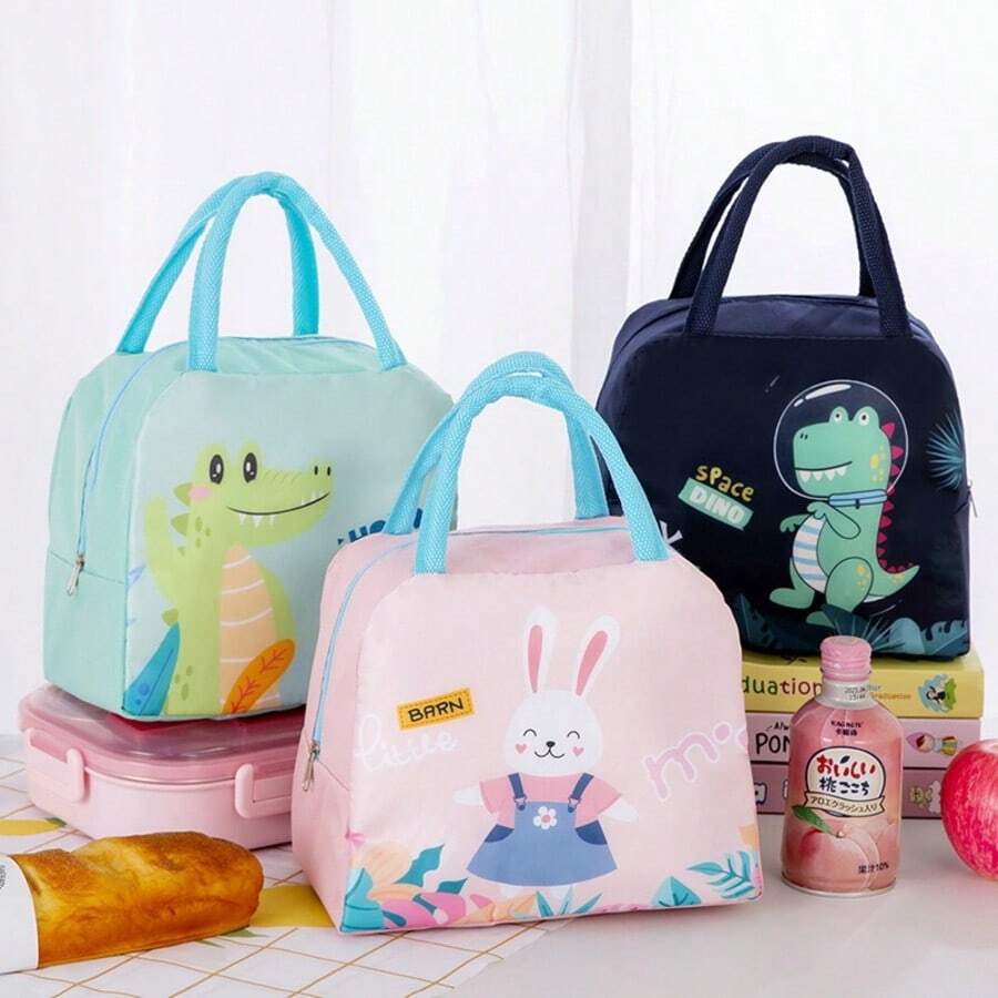 1 pieza Bolsa térmica aislada con estampado de dibujos animados, bolsa de almuerzo de pana, a prueba de fugas, suave y espaciosa, bolsa refrigeradora de almuerzo, caja de almuerzo impermeable, bolsa de maquillaje, bolsa de aseo de viaje, neceser de maquillaje de viaje