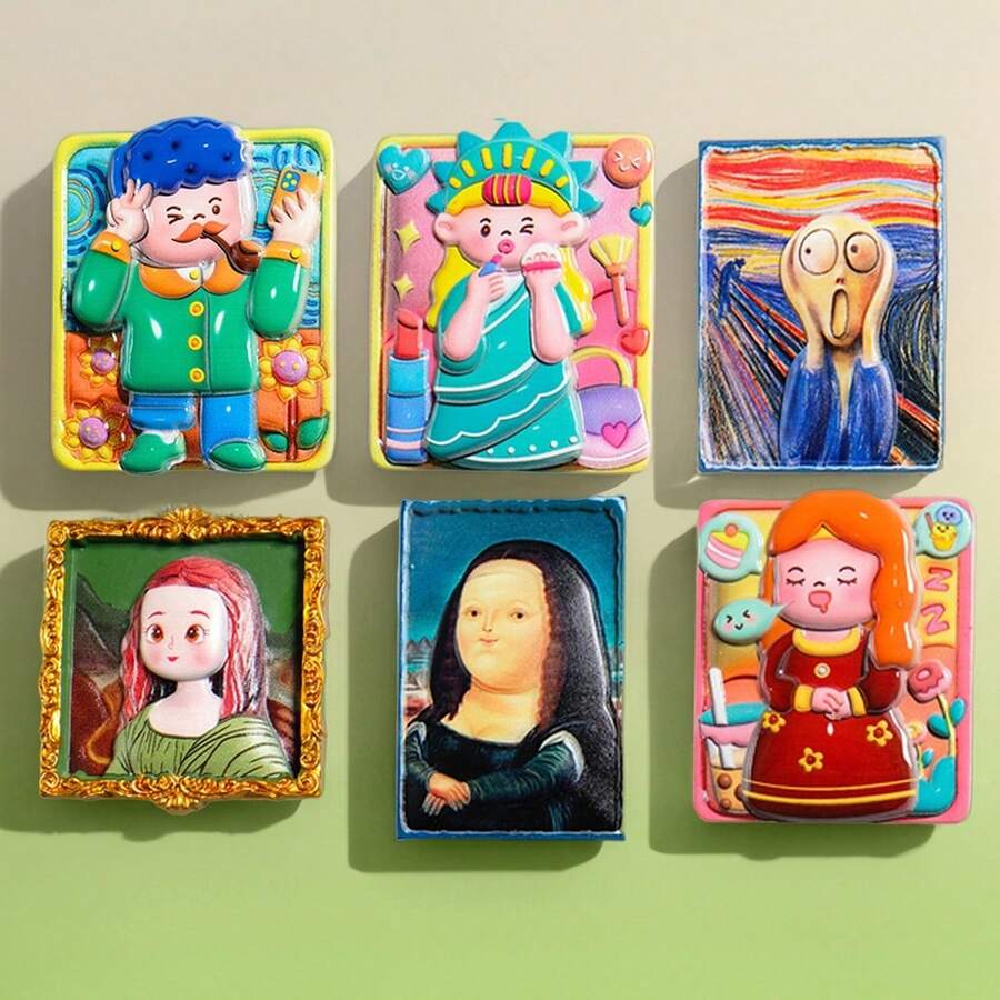 1 pieza Figura de niña con estilo de pintura linda de Van Gogh, imán de nevera de resina, pegatina magnética para decoración del hogar