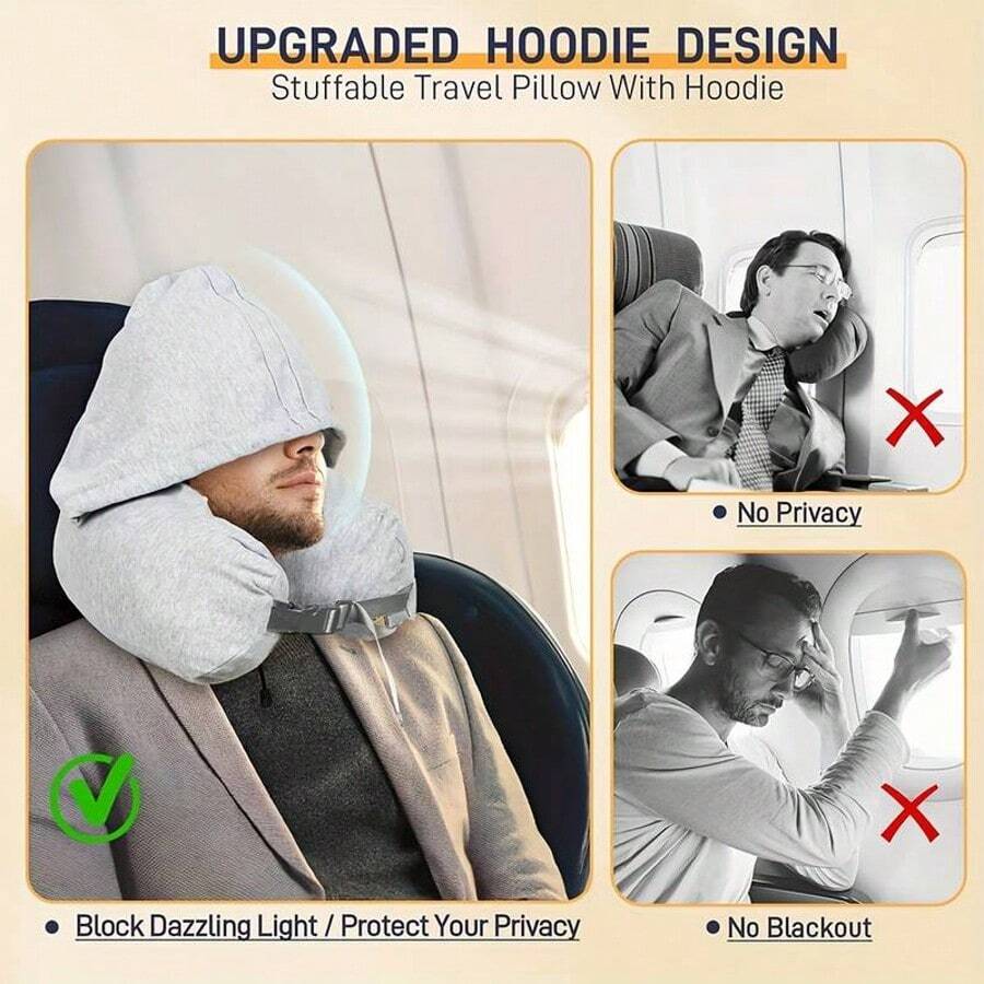 1 pieza Almohada de viaje con capucha, Almohada de cuello plegable, Bolsa de almacenamiento para almohada de viaje rellenable, Funda de almohada de cuello suave, Artículos de viaje empacables