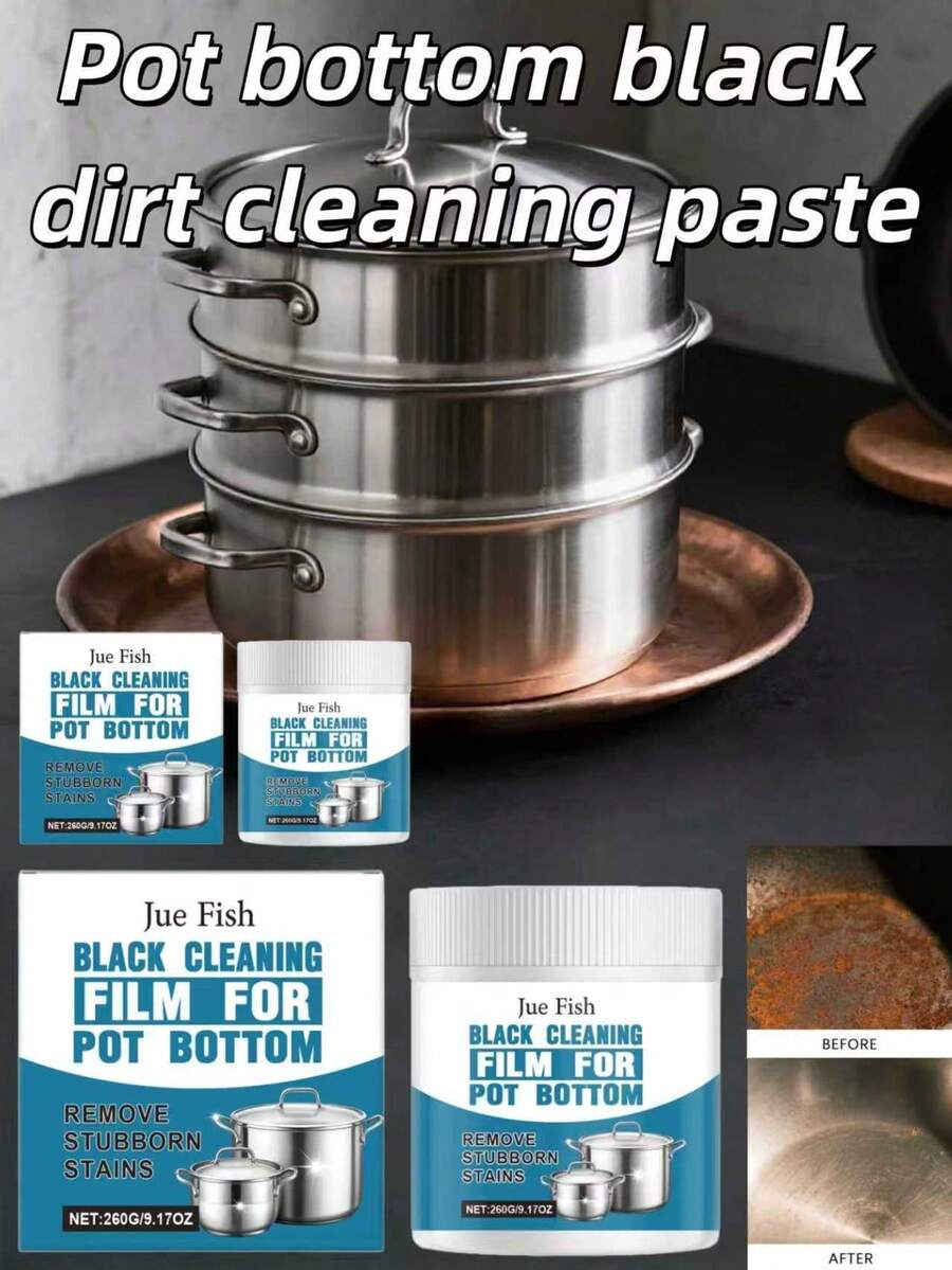 1 pieza Crema limpiadora negra para la parte inferior de ollas y sartenes Jue Fish, elimina las manchas negras, restaura el brillo de los utensilios de cocina, disuelve la grasa
