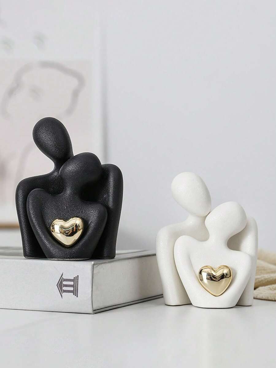 1 pieza Figura moderna y romántica de pareja abrazándose (medio juego), decorada con un corazón rojo, decoración única de resina abstracta de pareja abrazándose - Uso versátil, adecuada para decoración del hogar y la oficina, ideal para estanterías o entradas, también perfecta para la decoración del dormitorio y la sala de estar, y un regalo ideal para el Día de San Valentín.
