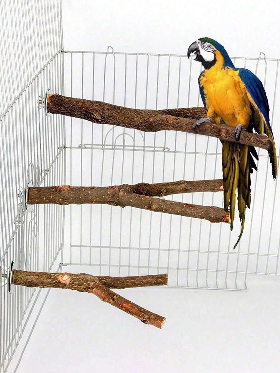 1 pieza Perchan de horquilla de madera de fruta natural, juguete rascador de doble horquilla de rama de árbol para loros, suministros inteligentes para pájaros, accesorio de jaula de pájaros, juguete para loros (Los árboles frutales crecen de forma natural, las formas varían; los tamaños y pesos pueden variar ligeramente)