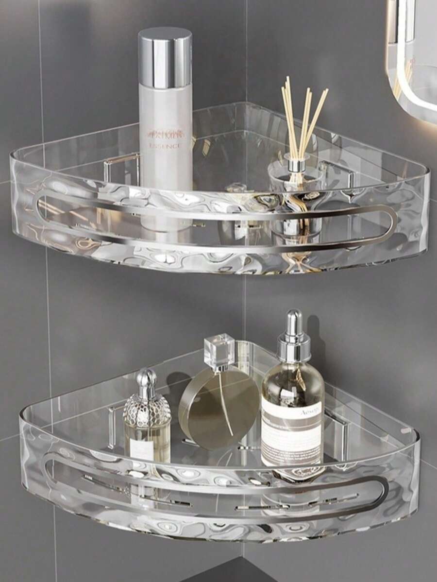 1 pieza Estantería de esquina para ducha, para almacenamiento de champú, acondicionador y jabón, diseño de drenaje rápido, instalación sin taladrar, apta para baño, cocina, accesorio de almacenamiento multifuncional para el baño, decoración del hogar, organizador de baño, decoración de otoño, de vuelta a la escuela