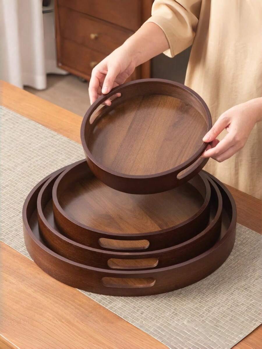 1 pieza Bandeja redonda de madera de nogal con asa, adecuada para aperitivos, pasteles, galletas y entremeses en la cocina, el comedor, el hotel y talla grande escenarios, bandeja de servir