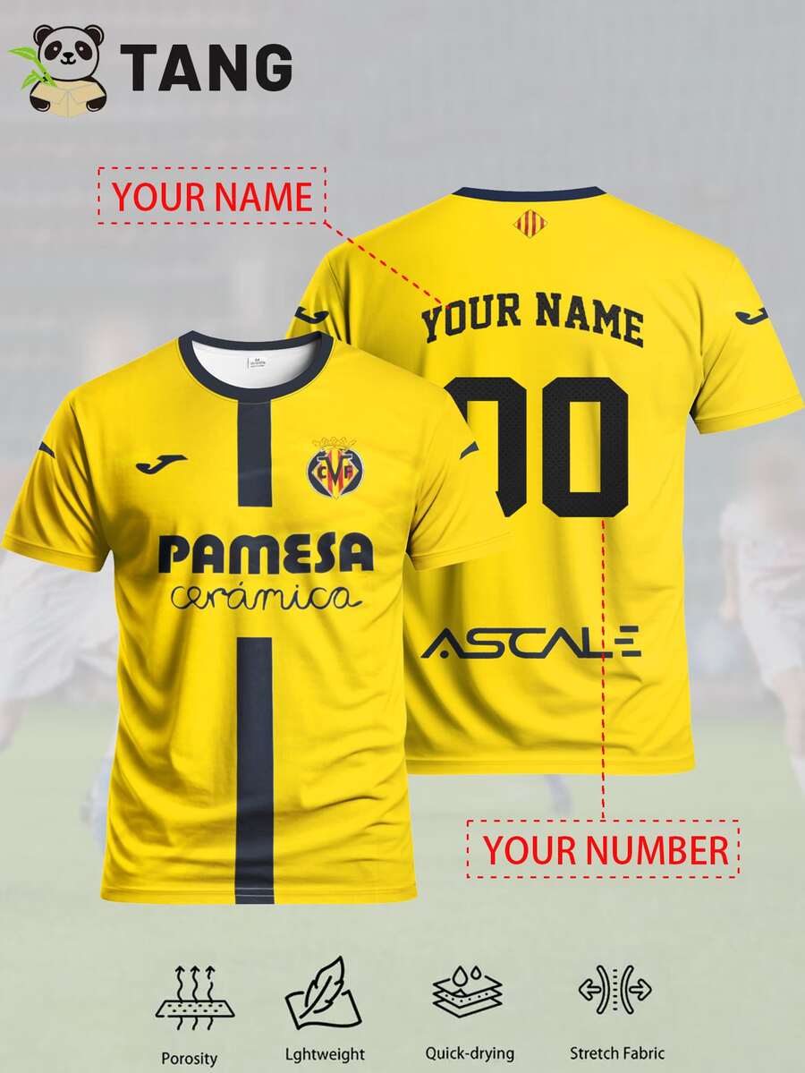 Camiseta de fútbol personalizada del Villarreal de La Liga para hombre, talla 25/26, camiseta deportiva de cuello redondo cómoda para entrenamiento de fútbol, uso casual y regalo