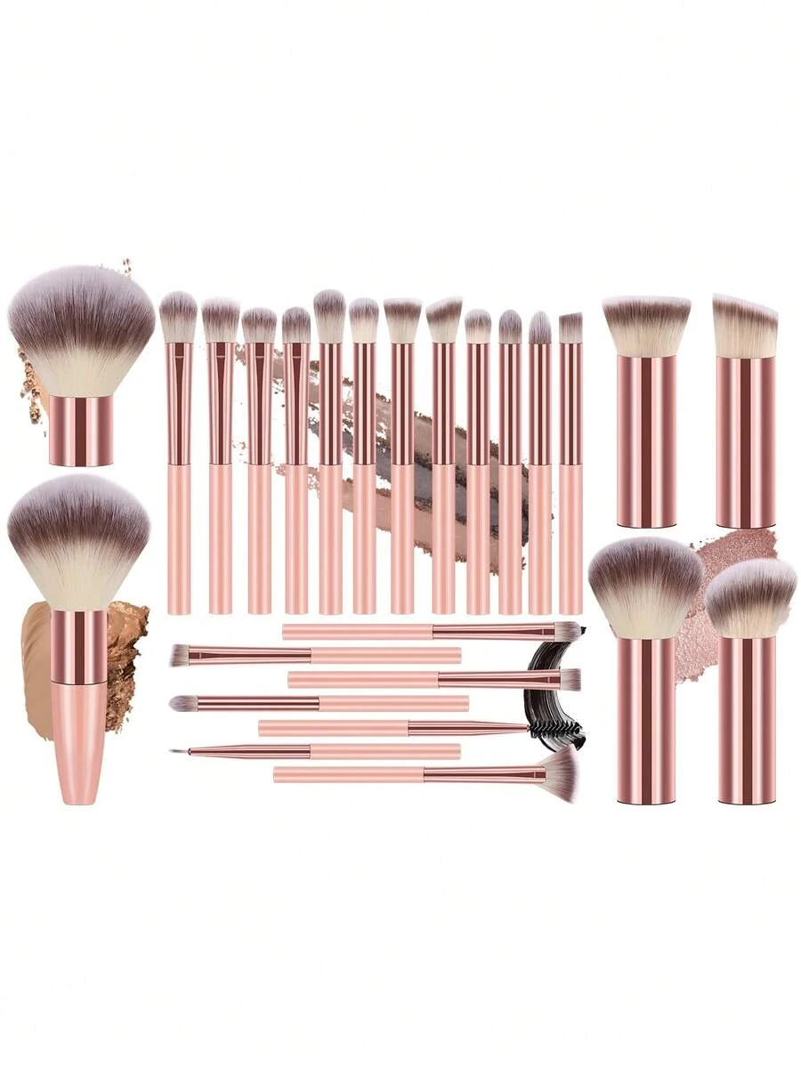 Set de 25 brochas de maquillaje todo en uno: brochas de fibra sintética premium ultrasuaves con formas completas para rostro y ojos (base, rubor, sombra de ojos). Aptas para todo tipo de piel, ideales para maquillaje diario, looks de oficina y viajes.