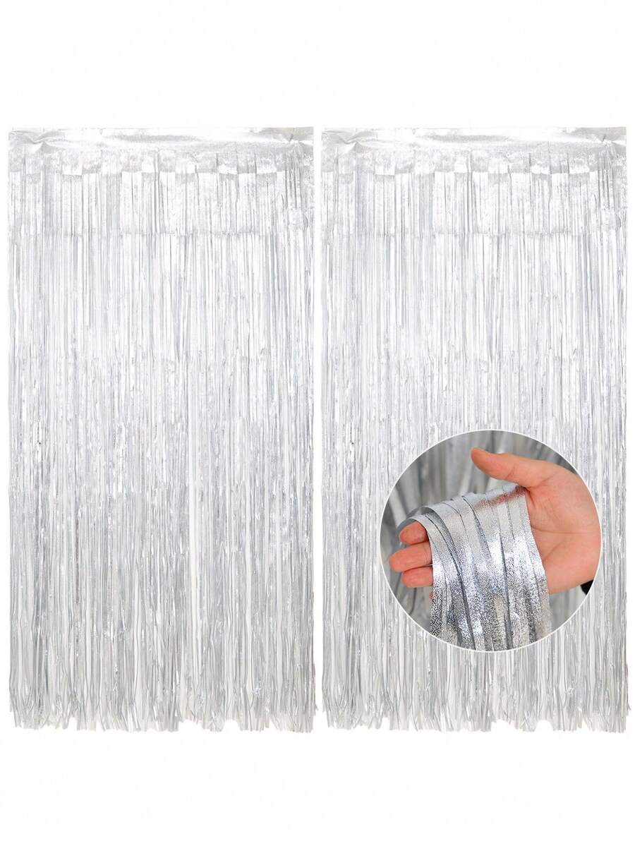 2 piezas Cortina de fondo plateada con escarcha para fiesta de cumpleaños, decoración colgante de fondo para fiesta de revelación de género, decoración de habitación para fiesta de cumpleaños, decoración de fondo para fiesta de baby shower, decoración de fondo para fiesta de cumpleaños, boda, año nuevo, decoración colgante de cumpleaños, regalo de baby shower, decoración de baby shower, decoración de revelación de género