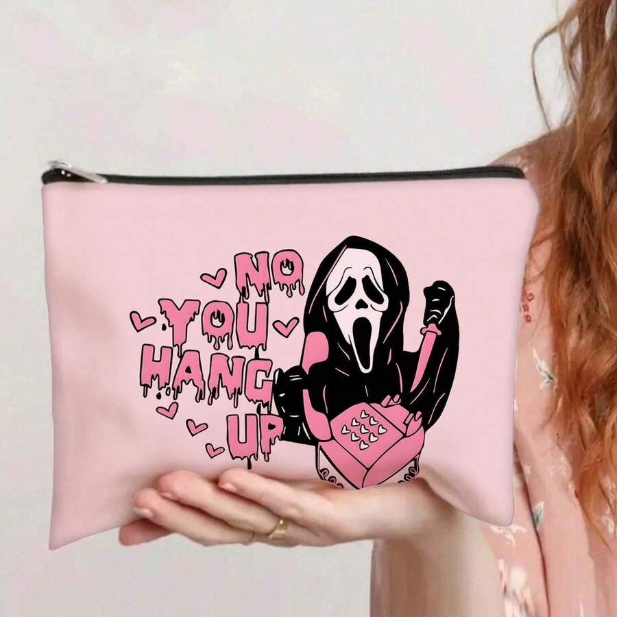 2 piezas, Bolsa de maquillaje con estampado de llamadas de la muerte rosa de Halloween y bolsa de cosméticos con cremallera y bolsa de artículos de tocador - Estilo gótico oscuro de la academia, bolsa de medicina reutilizable con tema de terror, bolsa de almacenamiento de bolígrafos, bolsa de viaje y maquillaje - Para la escuela, la decoración del hogar de verano, la bolsa de aperitivos de 9 "x 6" artículos de viaje, vacaciones, organizador de maquillaje, bolsa de viaje para mujeres