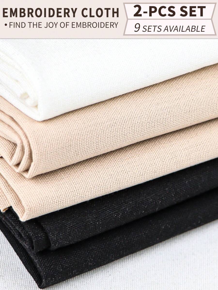 2 piezas de tela de bordado hecha a mano en caqui/negro/blanco, con suavidad moderada, superficie limpia, hilos distribuidos uniformemente, adecuada para manualidades de bordado