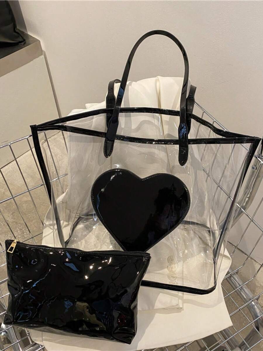 Set de 2 bolsas de viaje impermeables con decoración de corazón y gran capacidad, de material PVC, para natación, playa y vacaciones