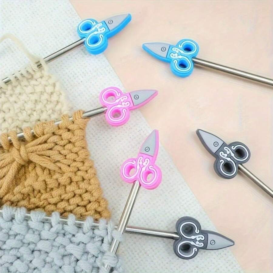 2 piezas Topes de aguja de tejer de silicona, Topes de aguja de tejer con forma de tijera, Protectores de punta de aguja de tejer, Tapas de aguja de tejer de colores, Ganchos de ganchillo para acolchar, Accesorios de tejer DIY