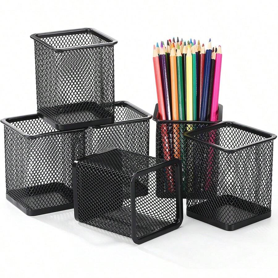3/4 piezas Soporte metálico para bolígrafos, Taza metálica redonda para bolígrafos, Soporte de malla multifunción para bolígrafos, Organizador de maquillaje para la escuela, la oficina y el hogar, adecuado como regalo de vuelta a clases, Acción de Gracias, Halloween y Navidad