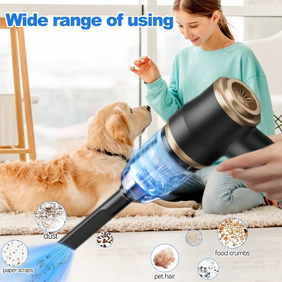 Aspiradora de mano inalámbrica portátil 3 en 1 con súper succión de 5000 Pa, batería dual recargable de 2000 mAh, bajo nivel de ruido que incluye múltiples accesorios y filtros, potente y conveniente, ideal para la limpieza del automóvil.
