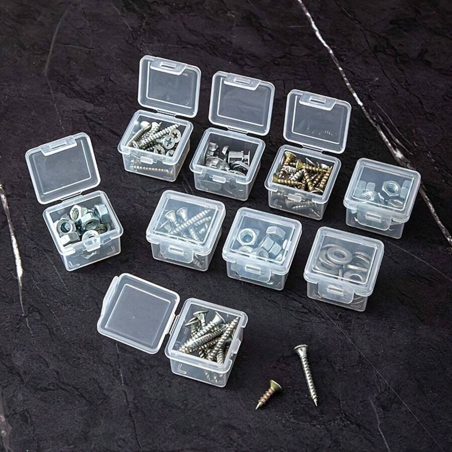 5/10/20 Cajas de almacenamiento de plástico transparente mini, caja de almacenamiento de joyas, adecuada para guardar tornillos, piezas pequeñas, contenedores de almacenamiento transparentes, caja de almacenamiento portátil multifuncional con tapa, ideal para artículos pequeños, manualidades, joyas y ferretería. Diseño creativo de caja de caramelos, caja de almacenamiento mini cuadrada, puede almacenar accesorios de joyería, caja de PP a prueba de polvo