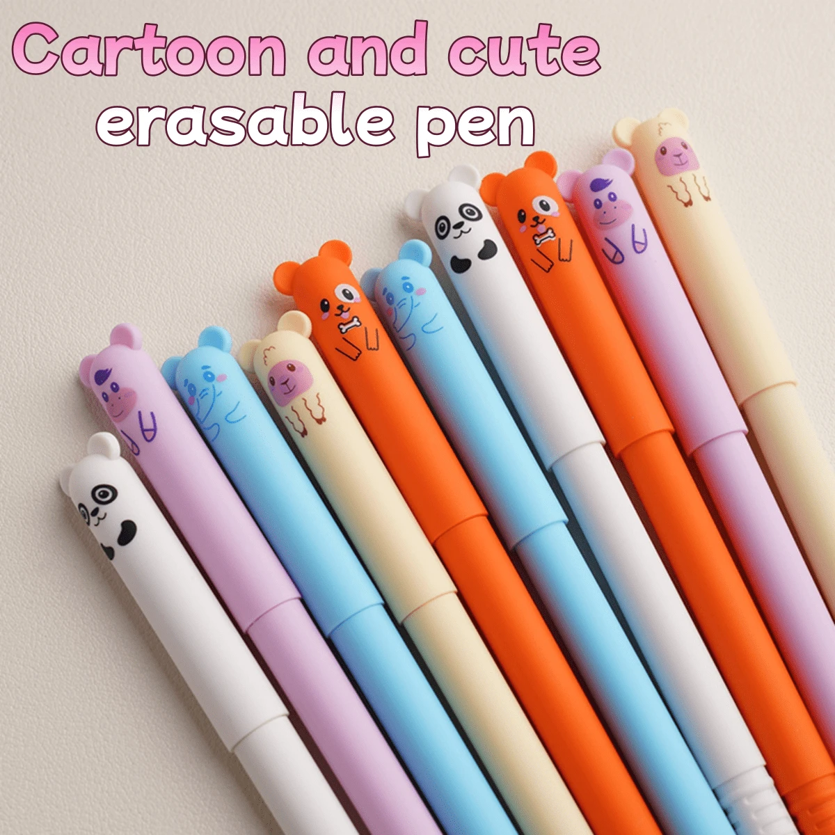 5/10 piezas de bolígrafos borrables con diseños de animales lindos, tamaño mediano, recargables, lavables, tinta azul/negra de 0.5 mm, de plástico, para útiles de oficina y escolares, regalos de maestros, estilo casual, útiles escolares, de vuelta a la escuela