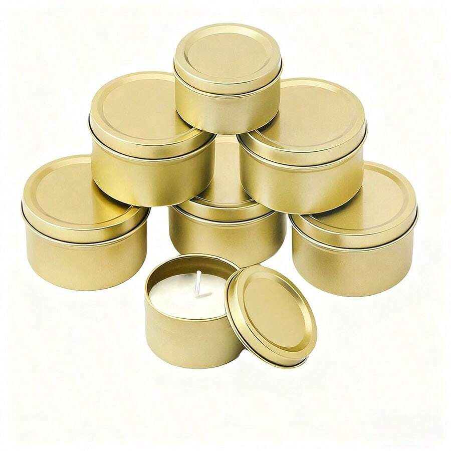 5/12 PIEZAS Latas de vela doradas para hacer velas, velas caseras DIY, artesanías, latas vacías para almacenamiento y empaque de regalos, latas de vela de aromaterapia con tapas, regalos festivos para amigos y decoración de mesa para reuniones familiares