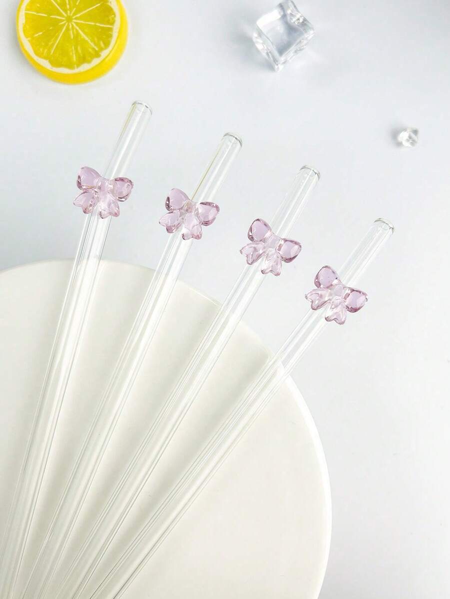 5 piezas Pajitas de vidrio con lazos rosas de dibujos animados, pajitas de vidrio reutilizables y duraderas, resistentes a temperaturas, se pueden usar para batidos, jugos, leche con té, bebidas frías, cócteles, reuniones familiares, oficinas, restaurantes, bares, pastelerías (con cepillo para pajitas) Regalos de Navidad