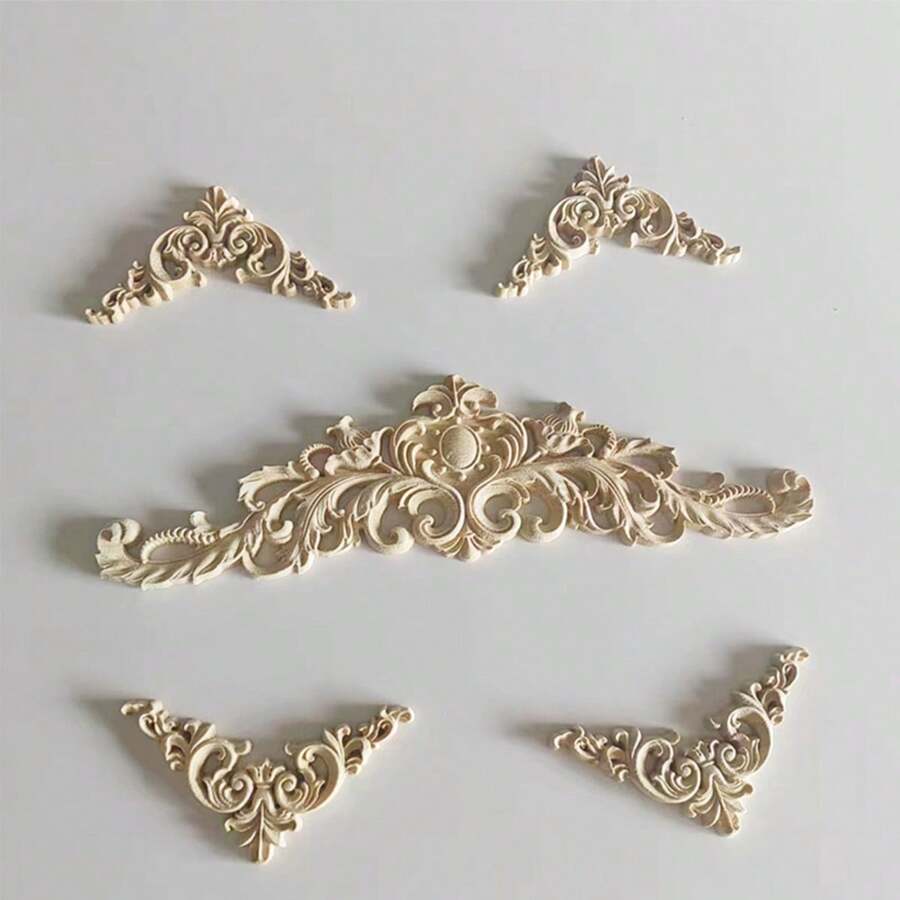 5 piezas Apliques de madera decorativos de talla para madera DIY y apliques para muebles, aplique de madera tallada largo para cama, puerta, armario, decoración de muebles