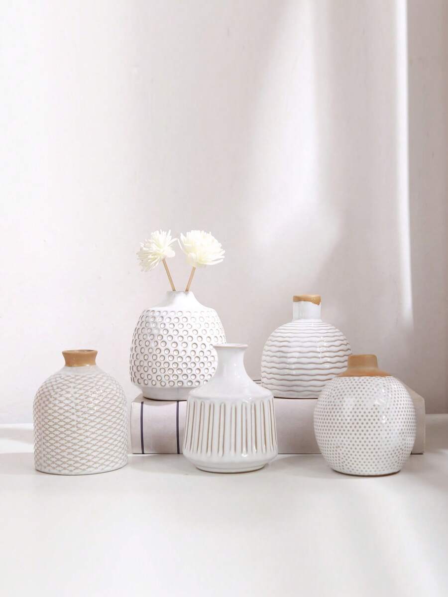 Set de 8 botellas de cerámica vintage con relieve para aceites esenciales, decoración de sobremesa para la sala de estar, entrada y mesita de noche