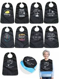 Baberos ajustables para adultos, delantales de tela impermeables para comer, suministros de asistencia para comer para ancianos y discapacitados, baberos de tela con cierre de gancho y bucle, adecuados para residentes de hogares de ancianos, babero para alimentos, babero ajustable para ancianos, baberos para adultos lavables, babero grande para alimentación de adultos, babero impermeable tridimensional para alimentos sucios, babero sin bolsillo para saliva de fácil lavado 1 babero de adulto de moda, impermeable, resistente al aceite y a las manchas, con recogedor de migas, lavable a máquina, cierre ajustable con broches, protector de ropa, con estampado de collar, adecuado para personas de mediana edad, ancianos, discapacitados y hogares de ancianos, regalo perfecto y pensativo