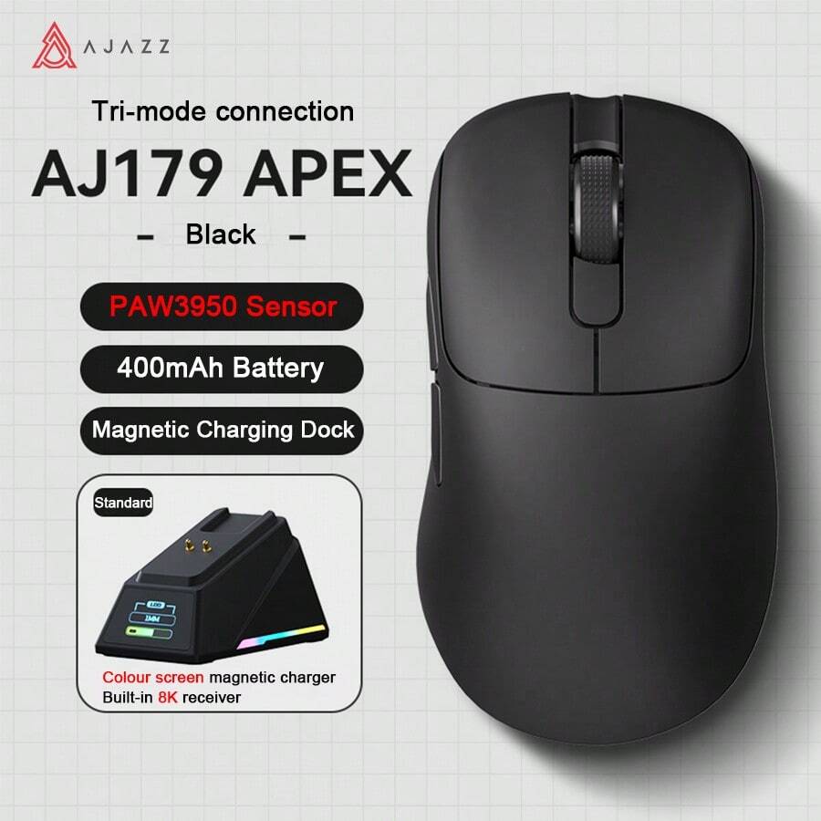 Apjazz AJ159 APEX Tri-Mode era un juego de escritura 8K, un punto de carga magnético con polvo de archivo, sensores PAW3950, hasta 42000 DPI, 56 g de luz, 100 m con interruptor HUANO