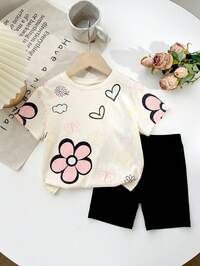 en Ligero estiramiento Conjuntos de camisetas para niñas