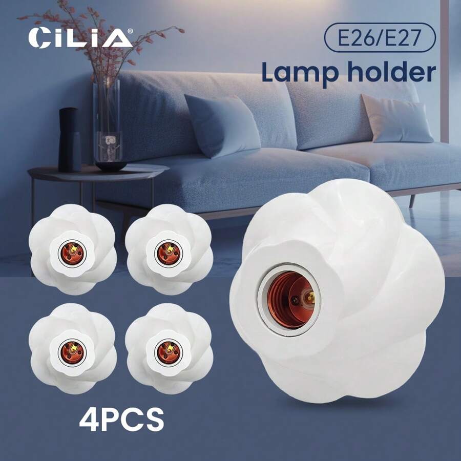 CILIA 4 piezas de Soporte de lámpara, Casquillo de bombilla E26/E27, Base en forma de pétalo, Portalámparas, Apto para uso doméstico, oficina e industrial, Blanco/Negro