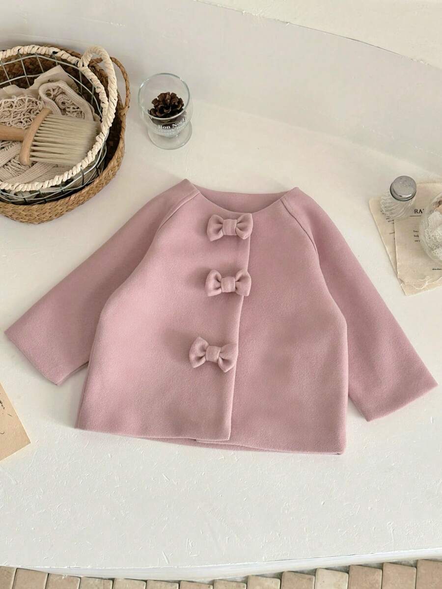 Abrigo/chaqueta de lana rosa con lazo para bebé niña, estilo de moda INS para invierno