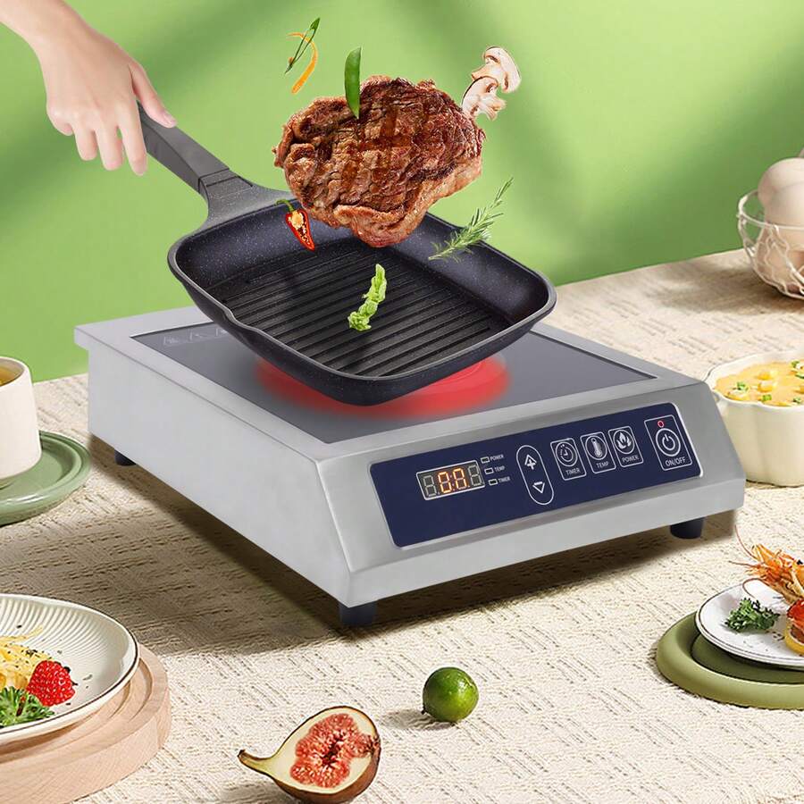 Cocina de inducción, cocina de inducción comercial de 3500 W máx., calentador de alimentos de 35 x 42 x 11 cm, placa de cocción eléctrica para restaurantes, cantinas,