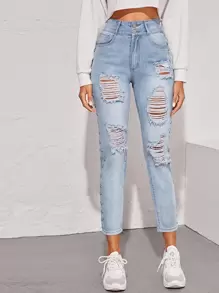 Jeans con diseño de tachuela con abertura con labado ligero