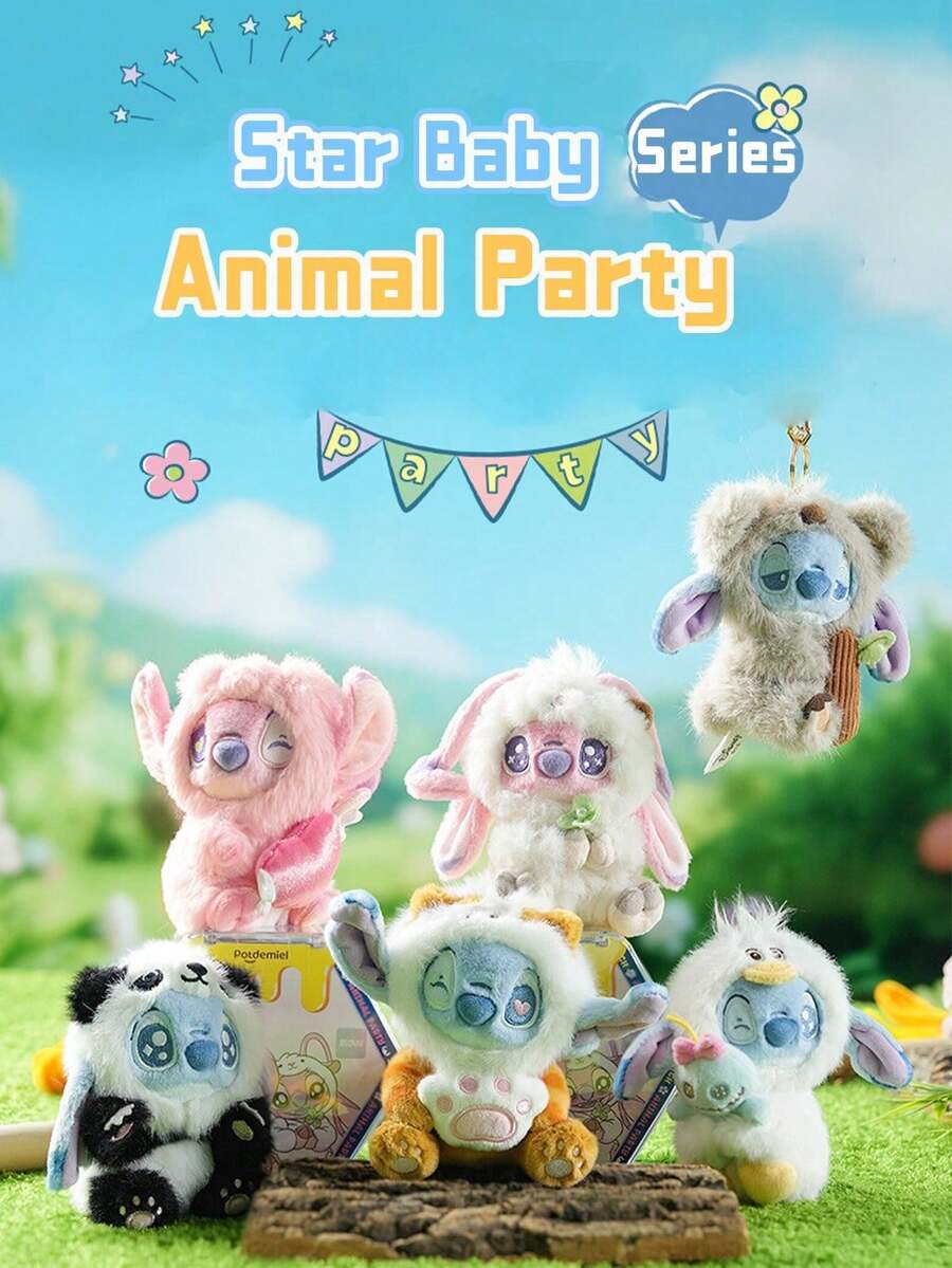 Caja ciega de peluche de fiesta animal de Lilo y Stitch, con adorables llaveros de Stitch disfrazado en varios temas de animales (cordero, cerdito, panda, koala, pato y talla grande), material de peluche suave y esponjoso, tacto delicado, detalles intrincados en disfraces y expresiones faciales, coleccionable sorpresa con selección aleatoria, posibles estilos ocultos para mayor emoción, accesorio de llavero resistente, perfecto para decorar bolsos, llaves, mochilas o como decoración de escritorio, ideal para fans, entusiastas de Lilo y Stitch, adolescentes, excelente para regalos (cumpleaños, fiestas, recuerdos), costura de alta calidad para durabilidad, imprescindible para coleccionistas de juguetes de peluche.