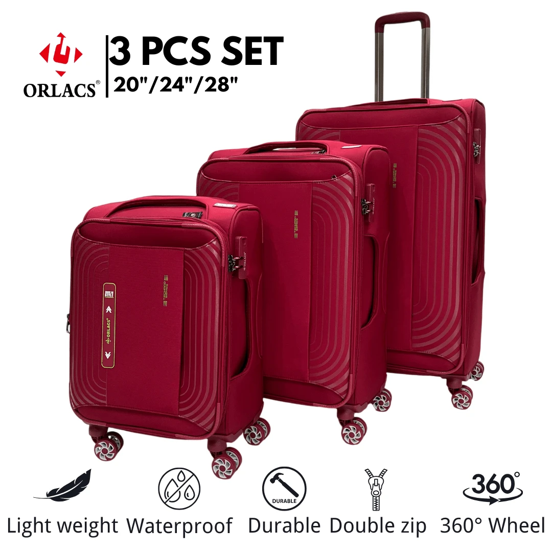 Equipaje ORLACS, Juego de Maletas 20+24+28, Conjunto de Tres Piezas, Material de Nailon, Ultra Ligero, Carrito de Aluminio, Asa Única, Cerradura, Cremallera Doble Expandible, Gran Capacidad de Almacenamiento, Ruedas Universales Silenciosas de 360 Grados, Alta Calidad, Impermeable, Resistente al Desgaste, Resistente a los Arañazos, Marca Europea, Diseño Europeo, Productos de Primera Calidad