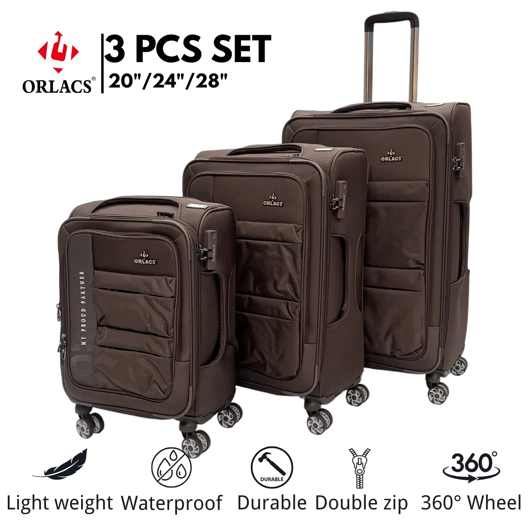 Equipaje ORLACS, Juego de Maletas 20+24+28, Set de Tres Piezas, Material de Tejido de Nailon, Súper Ligero, Varilla de Aluminio, Asa Única, Cerradura, Expandible con Doble Cremallera, Gran Capacidad de Almacenamiento, Ruedas Universales Silenciosas de 360°, Alta Calidad, Duradero, Impermeable, Resistente al Desgaste, Resistente a los Arañazos, Marca Europea