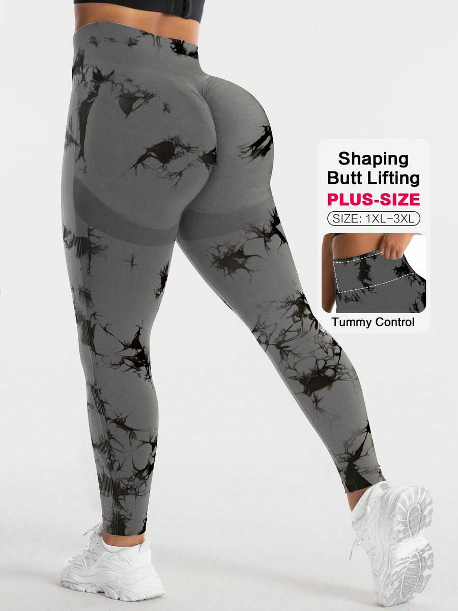 TNTOR Leggings deportivos de yoga con efecto tie-dye para mujer de talla grande, pantalones de entrenamiento con cintura alta que levantan el trasero, mallas elásticas que absorben la humedad, adecuados para ejercicio, ciclismo y fitness