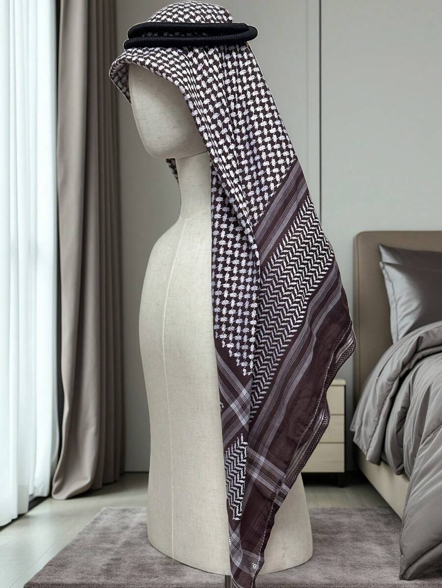 Chal para hombre de poliéster en marrón café y blanco con tejido jacquard, atuendo casual para Oriente Medio y la región árabe, para primavera/verano/otoño