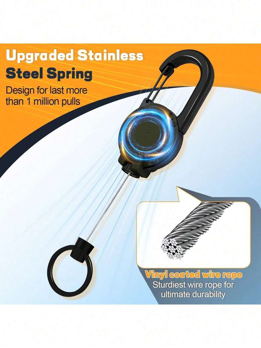 Llavero retráctil con cuerda de acero de 60 cm, mosquetón, colgante de insignia táctica - Equipo multifuncional para exteriores para camping, senderismo, pesca, golf - Organizador de llaves antirrobo para hombres y mujeres