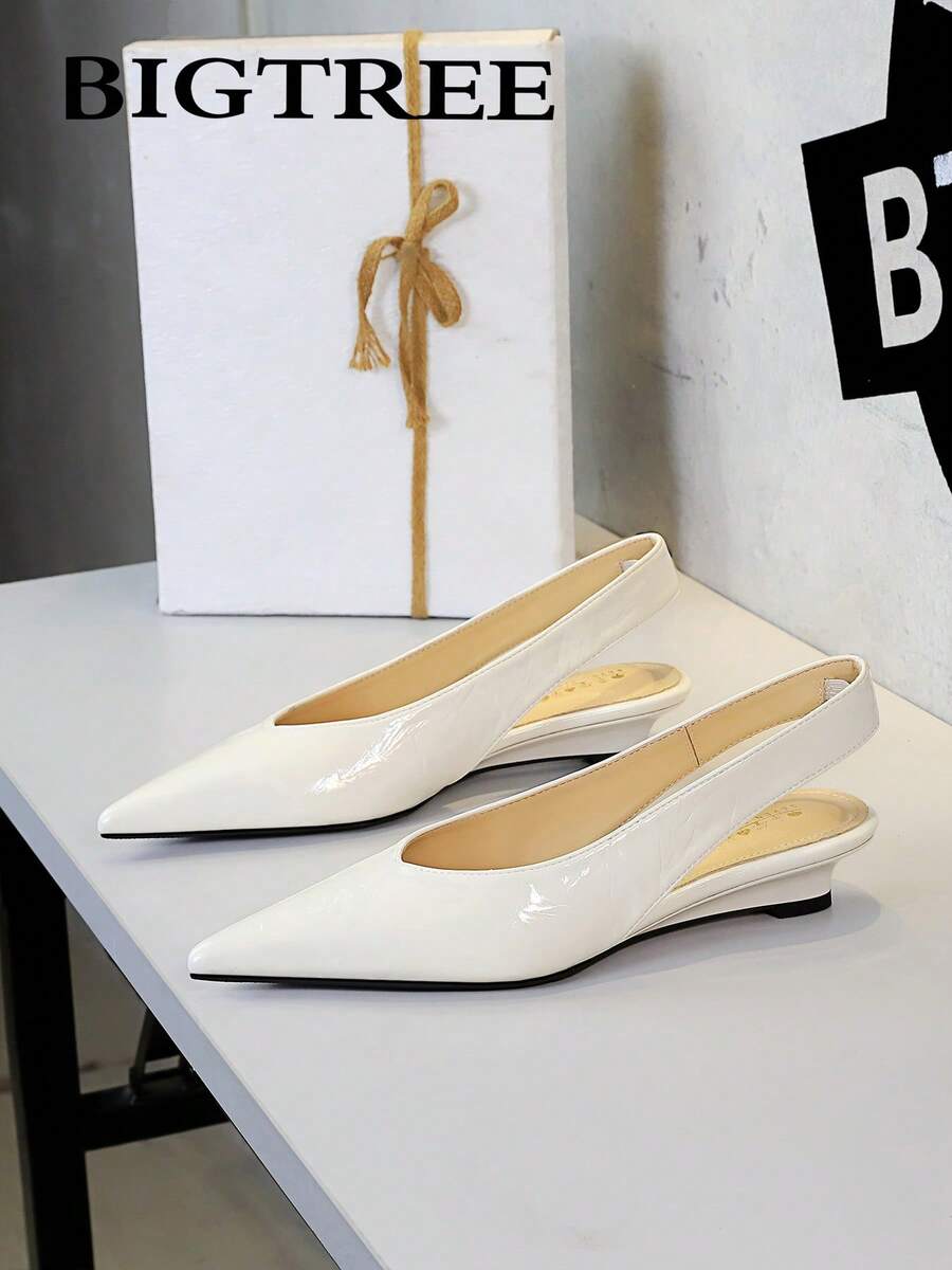 Zapatos de mujer de tacón bajo retro, zapatos de fiesta para mujer con punta puntiaguda, tacón de cuña y tira trasera sin empeine