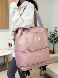 Bolsa de viaje plegable con ruedas, de gran capacidad, de moda y espaciosa, adecuada para mujeres, minimalista y elegante, con ruedas y asa desmontables, bolsa de fin de semana, bolsa de una noche, bolsa de equipaje, bolsa portátil, bolsa de trolley, bolsa de viaje de negocios a corta distancia, bolsa de viaje de maternidad de tela Oxford, adecuada para viajes, vacaciones, vuelta al colegio, turismo, dormitorio, estudiantes universitarios, estudiantes de secundaria #6 Más vendidos