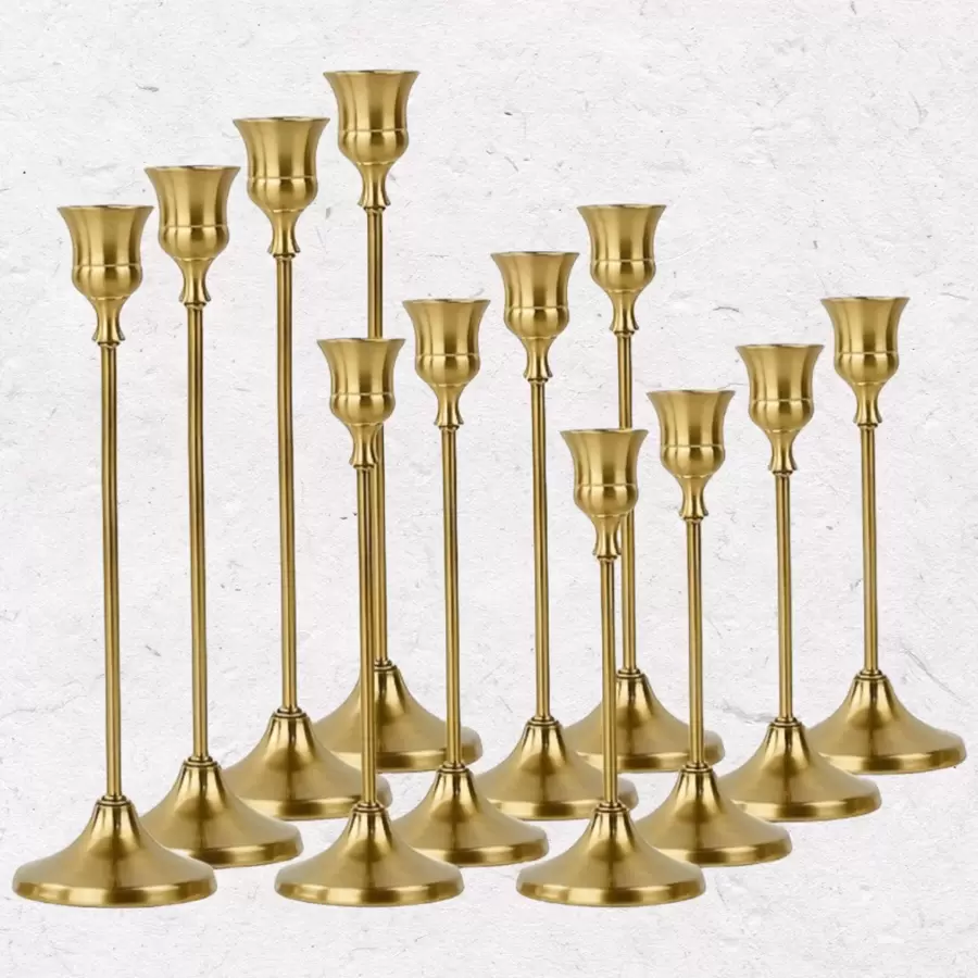 Juego de 12 candelabros cónicos de oro y cobre, 6 velas europeas elegantes y románticas para decoración de cena, boda, vintage, decoración de mesa, chimenea, vacaciones y centro de mesa