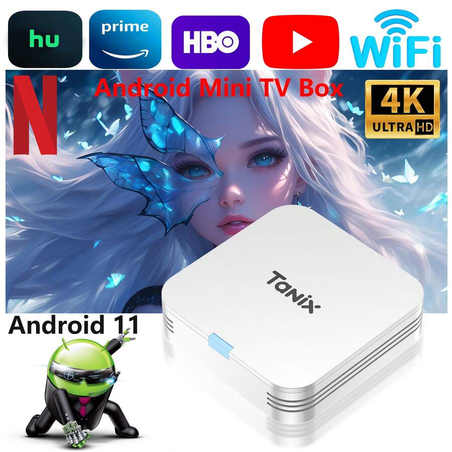 TUOGTCI Mini TV Box, Allwinner H313 TX1 Android 10 Smart TV Box - Reproductor multimedia 4K Ultra HD con CPU H313 de cuatro núcleos, Wi-Fi 2.4G y Ethernet, control parental, control remoto y fuente de alimentación, diseño compacto para mini TV, Smart TV doméstico, dispositivo de transmisión de video, componentes de alta calidad