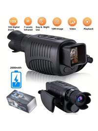 Monocular de visión nocturna totalmente negro, batería de litio de 2000mAh, dispositivo de visión nocturna infrarroja, adecuado para fotografía nocturna, grabación de vídeo, caza, camping, pesca, navegación, vigilancia, aventura al aire libre, , búsqueda y rescate, observación de vida silvestre, observación de aves, zoom digital 5X, tarjeta de almacenamiento no incluida NEW