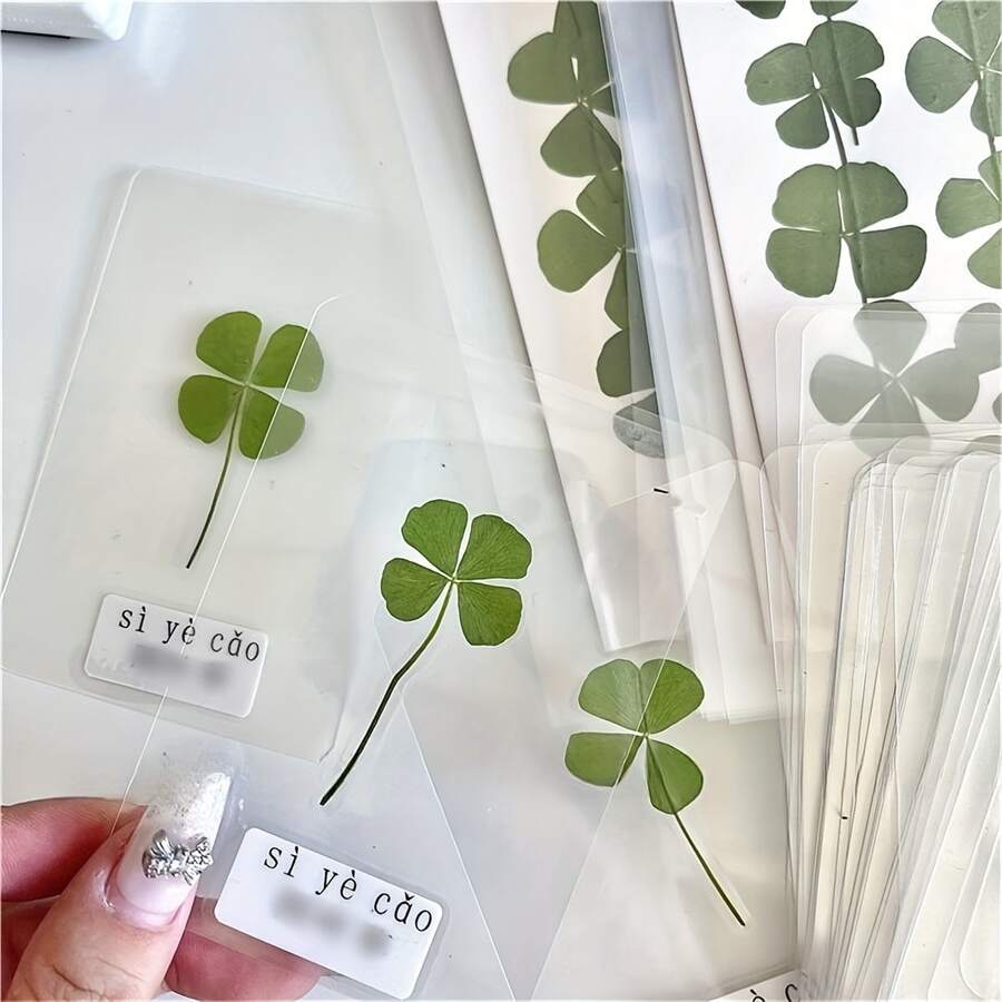 Tarjeta postal de trébol de cuatro hojas transparente, adecuada para aniversario, Acción de Gracias, Pascua - Marcador de libros floral, decoración de regalo, papelería para vacaciones, estilo minimalista y elegante, foto visible